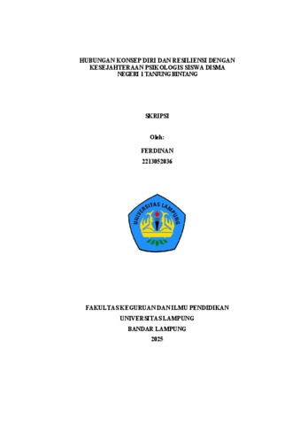 FERDINAN , - (2025) HUBUNGAN KONSEP DIRI DAN RESILIENSI DENGAN KESEJAHTERAAN PSIKOLOGIS SISWA DISMA NEGERI 1TANJUNGBINTANG. FAKULTAS KEGURUAN DAN ILMU PENDIDIKAN, UNIVERSITAS LAMPUNG.
