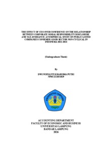 Dwi Nuryanti, Kharisma Putri (2026) THE EFFECT OF CEO OVERCONFIDENCE ON THE RELATIONSHIP BETWEEN CORPORATE SOSIAL RESPONSIBILITY DISCLOSURE AND TAX AVOIDANCE: AN EMPIRICAL STUDY ON PUBLIC LISTED COMPANIES CONSUMER GOOD SECTOR NON-CYCLICAL IN INDONESIA 2022-2024. Fakultas Ekonomi dan Bisnis, Universitas Lampung.