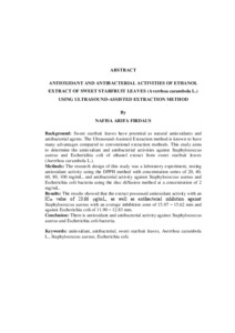 NAFISA, ARIFA FIRDAUS (2026) AKTIVITAS ANTIOKSIDAN DAN ANTIBAKTERI EKSTRAK ETANOL DAUN BELIMBING MANIS (Averrhoa carambola L.) MENGGUNAKAN METODE ULTRASOUND ASSISTED EXTRACTION. FAKULTAS KEDOKTERAN, UNIVERSITAS LAMPUNG.