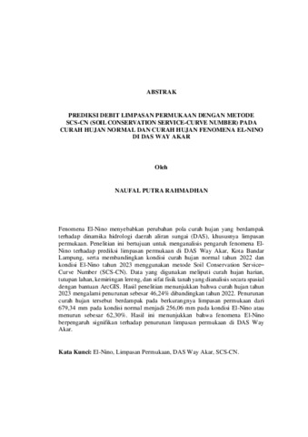 Naufal Putra , Rahmadhan (2026) PREDIKSI DEBIT LIMPASAN PERMUKAAN DENGAN METODE SCS-CN (SOIL CONSERVATION SERVICE-CURVE NUMBER) PADA CURAH HUJAN NORMAL DAN CURAH HUJAN FENOMENA EL-NINO DI DAS WAY AKAR. FAKULTAS PERTANIAN, UNIVERSITAS LAMPUNG.