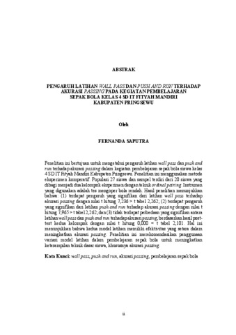 FERNANDA , SAPUTRA (2025) PENGARUH LATIHAN WALL PASS DAN PUSH AND RUN TERHADAP AKURASI PASSING PADA KEGIATAN PEMBELAJARAN SEPAK BOLA KELAS 4 SD IT FITYAH MANDIRI KABUPATEN PRINGSEWU. FAKULTAS KEGURUAN DAN ILMU PENDIDIKAN, UNIVERSITAS LAMPUNG.