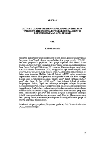 Kadek, Ramanda (2026) MITIGASI GEMPABUMI MENGGUNAKAN DATA GEMPA PADA TAHUN 1979-2021 DAN DATA PENGUKURAN GAYABERAT DI DAERAH BANYUMAS, JAWA TENGAH. TEKNIK, LAMPUNG.