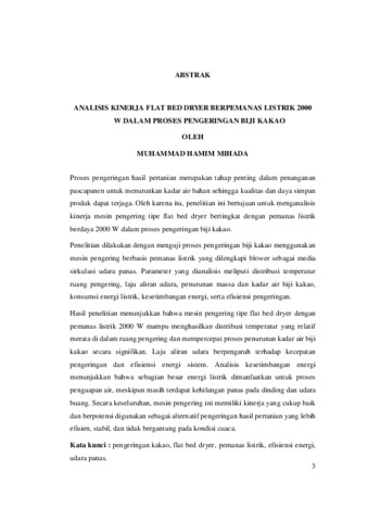 MUHAMMAD, HAMIM MIHADA (2026) ANALISIS KINERJA FLAT BED DRYER BERPEMANAS LISTRIK 2000 W DALAM PROSES PENGERINGAN BIJI KAKAO. FAKULTAS TEKNIK, UNIVERSITAS LAMPUNG.