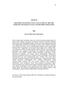 Tanda tangan digital merupakan salah satu metode keamanan penting dalam era digital untuk menjamin autentikasi dan integritas dokumen elektronik. Penelitian ini bertujuan untuk mengimplementasikan sistem tanda tangan digital berbasis QR Code menggunakan framework CodeIgniter 4 sebagai solusi autentikasi dokumen yang praktis dan efisien. Sistem memungkinkan pengguna untuk mengunggah dokumen PDF, menghasilkan tanda tangan digital dengan kode verifikasi unik, serta melakukan verifikasi keaslian dokumen melalui QR Code secara publik tanpa memerlukan akun pengguna. Metodologi yang digunakan adalah pendekatan Waterfall, yang meliputi tahapan analisis kebutuhan, perancangan sistem, implementasi, pengujian, dan evaluasi. Sistem dikembangkan menggunakan teknologi web berbasis framework CodeIgniter 4, basis data MySQL, serta integrasi teknologi QR Code untuk mempermudah proses verifikasi. Fitur utama sistem mencakup autentikasi pengguna dengan enkripsi bcrypt, unggah dokumen dengan validasi keamanan, pembangkitan kode verifikasi menggunakan fungsi random_bytes(8), integrasi QR Code untuk verifikasi, serta dashboard administrator untuk manajemen sistem. Hasil pengujian menunjukkan bahwa sistem berfungsi secara optimal dengan tingkat penerimaan pengguna sebesar 80%, serta mampu menyediakan solusi autentikasi dokumen digital yang aman dan efektif. Sistem ini berpotensi diimplementasikan pada berbagai institusi yang membutuhkan validasi dokumen digital berbasis teknologi QR Code.