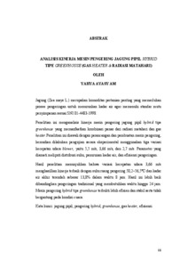 ANALISIS KINERJA MESIN PENGERING JAGUNG PIPIL HYBRID TIPE GREENHOUSE (GAS HEATER & RADIASI MATAHARI)