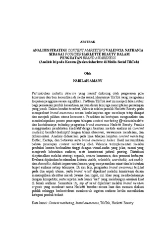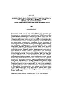 ANALISIS STRATEGI CONTENT MARKETING VALENCIA NATHANIA SEBAGAI FOUNDER HARLETTÉ BEAUTY DALAM PENGUATAN BRAND AWARENESS (Analisis Isi pada Konten @valenciaharlette di Media Sosial TikTok)