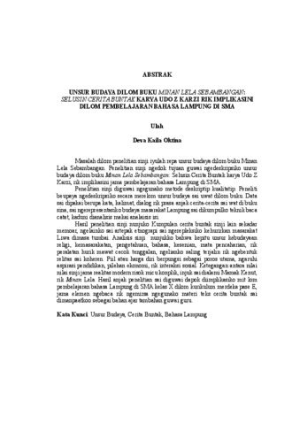 Deva , Kaila Oktina (2025) UNSUR BUDAYA DILOM BUKU MINAN LELA SEBAMBANGAN: SELUSIN CERITA BUNTAK KARYA UDO Z KARZI RIK IMPLIKASINI DILOM PEMBELAJARAN BAHASA LAMPUNG DI SMA. FAKULTAS KEGURUAN DAN ILMU PENDIDIKAN, UNIVERSITAS LAMPUNG.