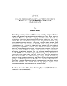 Miranda, Azzahra (2026) ANALISIS PREFERENSI MAHASISWA UNIVERSITAS LAMPUNG MENGGUNAKAN MODA TRANSPORTASI BERBASIS APLIKASI/ONLINE. FAKULTAS TEKNIK, UNIVERSITAS LAMPUNG.