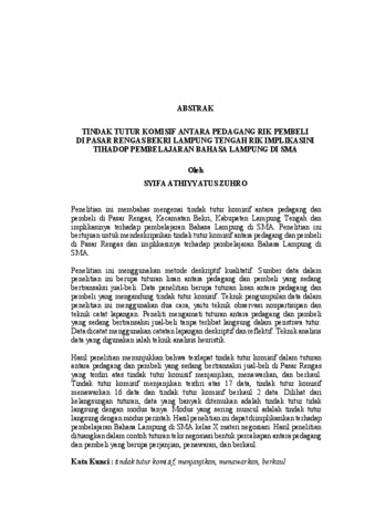 TINDAK TUTUR KOMISIF ANTARA PEDAGANG RIK PEMBELI DI PASAR RENGAS BEKRI LAMPUNG TENGAH RIK IMPLIKASINI TIHADOP PEMBELAJARAN BAHASA LAMPUNG DI SMA