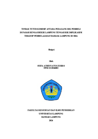 SYIFA, ZUHRO (2026) TINDAK TUTUR KOMISIF ANTARA PEDAGANG RIK PEMBELI DI PASAR RENGAS BEKRI LAMPUNG TENGAH RIK IMPLIKASINI TIHADOP PEMBELAJARAN BAHASA LAMPUNG DI SMA. FAKULTAS KEGURUAN DAN ILMU PENDIDIKAN, UNIVERSITAS LAMPUNG.