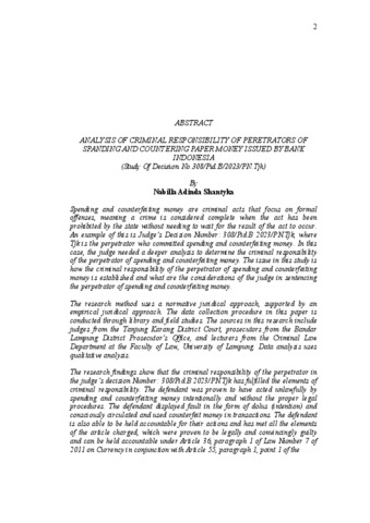 NABILLA ADINDA , SHANTYKA (2026) ANALISIS PERTANGUNGJAWABAN PELAKU TINDAK PIDANA PEMBELANJAAN SERTA PEMALSUAN MATA UANG KERTAS YANG DIKELUARKAN BANK INDONESIA (Studi Putusan Nomor: 308/Pid.B/2023/PN.Tjk). FAKULTAS HUKUM , UNIVERSITAS LAMPUNG.