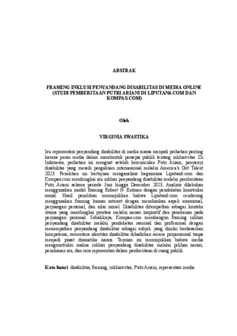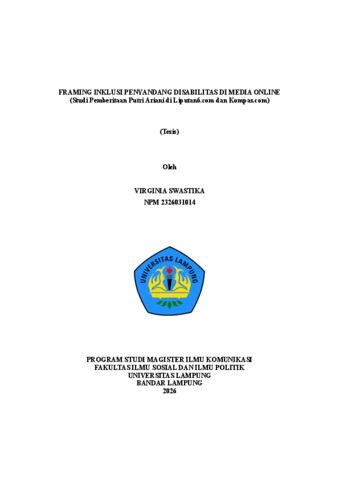 VIRGINIA , SWASTIKA (2026) FRAMING INKLUSI PENYANDANG DISABILITAS DI MEDIA ONLINE (Studi Pemberitaan Putri Ariani di Liputan6.com dan Kompas.com). Masters thesis, UNIVERSITAS LAMPUNG.