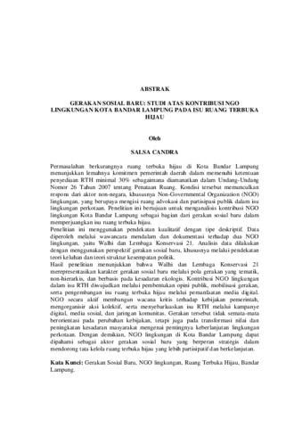 SALSA, CANDRA (2026) GERAKAN SOSIAL BARU: STUDI ATAS KONTRIBUSI NGO LINGKUNGAN KOTA BANDAR LAMPUNG PADA ISU RUANG TERBUKA HIJAU. FAKULTAS ILMU SOSIAL DAN ILMU POLITIK , UNIVERSITAS LAMPUNG.