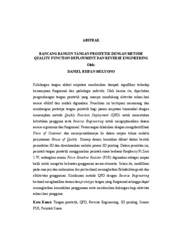 Daniel Risfan, Mulyono (2025) RANCANG BANGUN TANGAN PROSTETIK DENGAN METODE QUALITY FUNCTION DEPLOYMENT DAN REVERSE ENGINEERING. FAKULTAS TEKNIK, UNIVERSITAS LAMPUNG.
