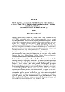 Meiza , Amanda Pratama (2026) PERAN KEJAKSAAN NEGERI BANDAR LAMPUNG PADA EKSEKUSI PEMBERIAN RESTITUSI TERHADAP ANAK KORBAN TINDAK PIDANA KEKERASAN SEKSUAL (Studi Putusan Nomor: 101/Pid.Sus/2024/PN.Tjk). FAKULTAS HUKUM , UNIVERSITAS LAMPUNG.