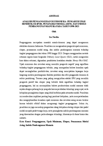 ANALISIS PENGANGGURAN DI INDONESIA: PENGARUH UPAH MINIMUM, EKSPOR, PENANAMAN MODAL ASING, DAN INDEKS PEMBANGUNAN MANUSIA PADA TAHUN 1990-2023