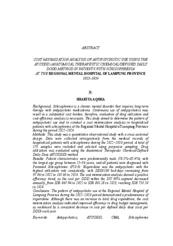 Background: Schizophrenia is a chronic mental disorder that requires long-term therapy with antipsychotic medications. Continuous use of antipsychotics may result in a substantial cost burden; therefore, evaluation of drug utilization and cost-efficiency analysis is necessary. This study aimed to determine the pattern of antipsychotic use and to conduct a cost minimization analysis in hospitalized patients with schizophrenia at the Regional Mental Hospital of Lampung Province during the period 2022–2024. Methods: This study was a quantitative observational study with a cross-sectional design. Data were collected retrospectively from the medical records of hospitalized patients with schizophrenia during the 2022–2024 period. A total of 173 samples were included and selected using purposive sampling. Drug utilization was evaluated using the Anatomical Therapeutic Chemical/Defined Daily Dose (ATC/DDD) method. Results: Patient characteristics were predominantly male (78.5%–85.4%), with the largest age group between 25–34 years, and all patients were diagnosed with Paranoid Schizophrenia (F20.0). Risperidone was the antipsychotic with the highest utilization rate consistently, with DDD/100 bed-days increasing from 97.06 in 2022 to 105.63 in 2024. The cost minimization analysis showed a positive efficiency trend, as the cost per DDD within the DU 90% segment decreased annually, from IDR 867.94 in 2022 to IDR 801.28 in 2023, reaching IDR 753.50 in 2024. Conclusion: The pattern of antipsychotic use at the Regional Mental Hospital of Lampung Province during the 2022–2024 period demonstrated a predominance of risperidone. Although there was an increase in total drug expenditure, the cost minimization analysis indicated improved efficiency in drug budget management, as evidenced by a consistent decrease in cost per defined daily dose (cost per DDD) each year. Keywords: Antipsychotics, ATC/DDD, CMA, Schizophrenia Latar Belakang: Skizofrenia merupakan gangguan jiwa kronis yang memerlukan terapi jangka panjang dengan penggunaan obat antipsikotik. Penggunaan ant ipsikotik secara berkelanjutan berpotensi menimbulkan beban biaya yang cukup besar, sehingga diperlukan evaluasi penggunaan obat serta analisis efisiensi biaya. Penelit ian ini bertujuan untuk mengetahui pola penggunaan ant ipsikotik serta melakukan analisis minimalisasi biaya pada pasien skizofrenia rawat inap di Rumah Sakit Jiwa Daerah Provinsi Lampung periode 2022–2024. Metode: Penelit ian ini merupakan penelit ian kuant itatif dengan desain observasional menggunakan pendekatan cross-sectional. Pengambilan data dilakukan secara retrospektif menggunakan data rekam medis pasien skizofrenia rawat inap periode 2022–2024. Jumlah sampel sebanyak 173 sampel dan dipilih menggunakan teknik purposive sampling. Hasil: Karakteristik pasien didominasi oleh laki-laki (78,5%–85,4%) dengan kelompok usia terbanyak pada rentang 25–34 tahun dan seluruhnya memiliki diagnosis Skizofrenia Paranoid (F20.0). Risperidon merupakan ant ipsikotik dengan t ingkat penggunaan tertinggi secara konsisten, dengan nilai DDD/100 beddays yang meningkat dari 97,06 (2022) menjadi 105,63 (2024). Hasil analisis minimalisasi biaya menunjukkan tren efisiensi yang posit if, di mana nilai cost per DDD pada segmen DU 90% mengalami penurunan set iap tahunnya, yaitu sebesar Rp867,94 pada tahun 2022, menjadi Rp801,28 pada tahun 2023, dan mencapai Rp753,50 pada tahun 2024. Kesimpulan: Pola penggunaan ant ipsikotik di RSJ Daerah Provinsi Lampung selama periode 2022–2024 menunjukkan dominasi penggunaan Risperidon. Meskipun terdapat peningkatan total biaya penggunaan obat, analisis minimalisasi biaya membuktikan adanya efisiensi dalam pengelolaan anggaran obat yang ditandai dengan penurunan nilai biaya per unit dosis harian ( cost per DDD) set iap tahunnya. Kata Kunci: AMiB, Ant ipsikotik, ATC/DDD, Skizofrenia