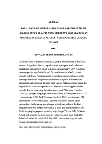 Reynaldi Febriyan, Haholongan (2025) TOTAL POPULASI MIKROBA PADA TANAH MARJINAL SETELAH APLIKASI PUPUK ORGANIK YANG DIPERKAYA MIKROBA DENGAN PENGOLAHAN LAHAN DI PT. GREAT GIANT PINEAPPLE LAMPUNG TENGAH. MATEMATIKA DAN ILMU PENGETAHUAN ALAM, UNIVERSITAS LAMPUNG.