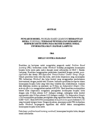 SHELLY, GUSTIKA HARAHAP (2026) PENGARUH MODEL PROBLEM BASED LEARNING BERBANTUAN MEDIA WORDWALL TERHADAP PENINGKATAN KEMAMPUAN BERPIKIR KRITIS SISWA PADA MATERI DAMPAK SOSIAL INFORMATIKA MAN 1 BANDAR LAMPUNG. FAKULTAS KEGURUAN DAN ILMU PENDIDIKAN, UNIVERSITAS LAMPUNG.