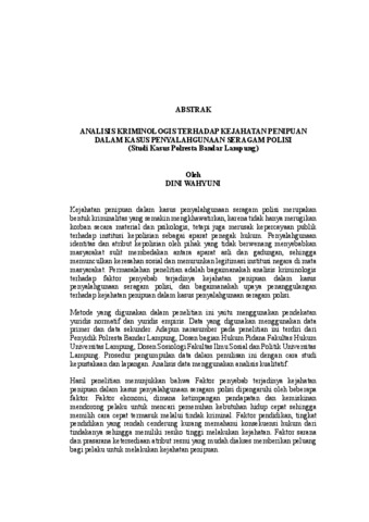 Dini , Wahyuni (2026) ANALISIS KRIMINOLOGIS TERHADAP KEJAHATAN PENIPUAN DALAM KASUS PENYALAHGUNAAN SERAGAM POLISI (Studi Kasus Polresta Bandar Lampung). FAKULTAS HUKUM, UNIVERSITAS LAMPUNG.
