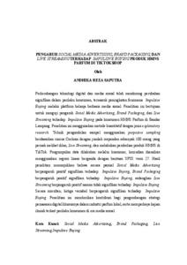 ANDHIKA , REZA SAPUTRA (2025) PENGARUH SOCIAL MEDIA ADVERTISING, BRAND PACKAGING, DAN LIVE STREAMING TERHADAP IMPULSIVE BUYING PRODUK HMNS PARFUM DI TIKTOKSHOP. FAKULTAS ILMU SOSIAL DAN ILMU POLITIK , UNIVERSITAS LAMPUNG.