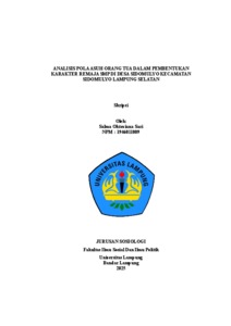 Salma Oktaviana , Sari (2026) ANALISIS POLA ASUH ORANG TUA DALAM PEMBENTUKAN KARAKTER REMAJA SMP DI DESA SIDOMULYO KECAMATAN SIDOMULYO LAMPUNG SELATAN. FAKULTAS ILMU SOSIAL DAN ILMU POLITIK, UNIVERSITAS LAMPUNG.