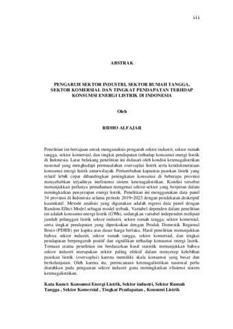 Ridho, Alfajar (2025) PENGARUH SEKTOR INDUSTRI, SEKTOR RUMAH TANGGA, SEKTOR KOMERSIAL DAN TINGKAT PENDAPATAN TERHADAP KONSUMSI ENERGI LISTRIK DI INDONESIA. FAKULTAS EKONOMI DAN BISNIS , UNIVERSITAS LAMPUNG.