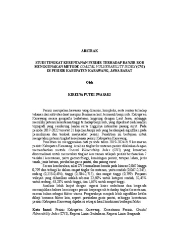 Kireina, Putri Iwasaki (2025) STUDI TINGKAT KERENTANAN PESISIR TERHADAP BANJIR ROB MENGGUNAKAN METODE COASTAL VULNERABILITY INDEX (CVI) DI PESISIR KABUPATEN KARAWANG, JAWA BARAT. FAKULTAS TEKNIK, UNIVERSITAS LAMPUNG.
