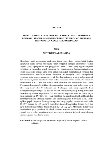 POPULASI DAN KEANEKARAGAMAN MESOFAUNA TANAH PADA BERBAGAI TEKNIK DAN DOSIS APLIKASI PUPUK CAMPURAN PADA PERTANAMAN NANAS RATOON di PT.GGP