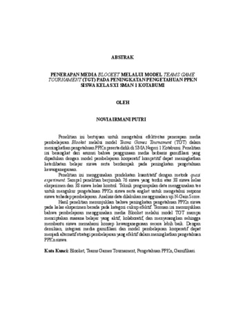 Novia Irmani , Putri (2026) PENERAPAN MEDIA BLOOKET MELALUI MODEL TEAMS GAME TOURNAMENT (TGT) PADA PENINGKATAN PENGETAHUAN PPKn SISWA KELAS XI SMAN 1 KOTABUMI. FAKULTAS KEGURUAN DAN ILMU PENDIDIKAN, UNIVERSITAS LAMPUNG.