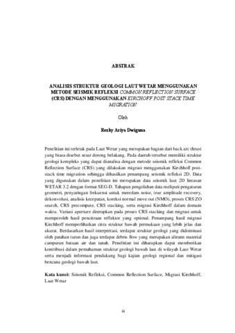Rezky Ariya , Dwiguna (2026) ANALISIS STRUKTUR GEOLOGI LAUT WETAR MENGGUNAKAN METODE SEISMIK REFLEKSI COMMON REFLECTION SURFACE (CRS) DENGAN MENGGUNAKAN KIRCHOFF POST STACK TIME MIGRATION. FAKULTAS TEKNIK, UNIVERSITAS LAMPUNG.