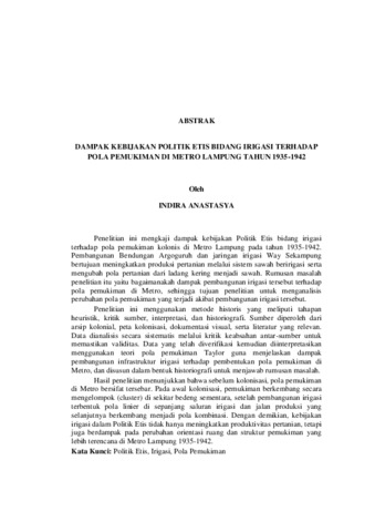 Penelitian ini mengkaji dampak kebijakan Politik Etis bidang irigasi terhadap pola pemukiman kolonis di Metro Lampung pada tahun 1935-1942. Pembangunan Bendungan Argoguruh dan jaringan irigasi Way Sekampung bertujuan meningkatkan produksi pertanian melalui sistem sawah beririgasi serta mengubah pola pertanian dari ladang kering menjadi sawah. Rumusan masalah penelitian itu yaitu bagaimanakah dampak pembangunan irigasi tersebut terhadap pola pemukiman di Metro, sehingga tujuan penelitian untuk menganalisis perubahan pola pemukiman yang terjadi akibat pembangunan irigasi tersebut. Penelitian ini menggunakan metode historis yang meliputi tahapan heuristik, kritik sumber, interpretasi, dan historiografi. Sumber diperoleh dari arsip kolonial, peta kolonisasi, dokumentasi visual, serta literatur yang relevan. Data dianalisis secara sistematis melalui kritik keabsahan antar-sumber untuk memastikan validitas. Data yang telah diverifikasi kemudian diinterpretasikan menggunakan teori pola pemukiman Taylor guna menjelaskan dampak pembangunan infrastruktur irigasi terhadap pembentukan pola pemukiman di Metro, dan disusun dalam bentuk historiografi untuk menjawab rumusan masalah. Hasil penelitian menunjukkan bahwa sebelum kolonisasi, pola pemukiman di Metro bersifat tersebar. Pada awal kolonisasi, pemukiman berkembang secara mengelompok (cluster) di sekitar bedeng sementara, setelah pembangunan irigasi terbentuk pola linier di sepanjang saluran irigasi dan jalan produksi yang selanjutnya berkembang menjadi pola kombinasi. Dengan demikian, kebijakan irigasi dalam Politik Etis tidak hanya meningkatkan produktivitas pertanian, tetapi juga berdampak pada perubahan orientasi ruang dan struktur pemukiman yang lebih terencana di Metro Lampung 1935-1942. Kata Kunci: Politik Etis, Irigasi, Pola Pemukiman