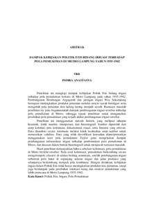 Indira , Anastasya (2026) DAMPAK KEBIJAKAN POLITIK ETIS BIDANG IRIGASI TERHADAP POLA PEMUKIMAN DI METRO LAMPUNG PADA TAHUN 1935-1942. FAKULTAS KEGURUAN DAN ILMU PENDIDIKAN, UNIVERSITAS LAMPUNG.
