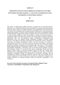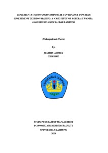 Relifidi, Audrey (2026) IMPLEMENTATION OF GOOD CORPORATE GOVERNANCE TOWARDS INVESTMENT DECISION-MAKING: A CASE STUDY OF KOPERASI WANITA ANGGREK BULAN IN BANDAR LAMPUNG. Ekonomi dan Bisnis, Universitas Lampung.