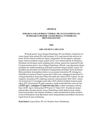 Aryani, Cahyanti (2026) Sebaran Logam Berat Timbal (Pb) dan Kadmium (Cd) di Perairan Pesisir Anyer hingga Panimbang, Provinsi Banten. FAKULTAS PERTANIAN, UNIVERSITAS LAMPUNG.