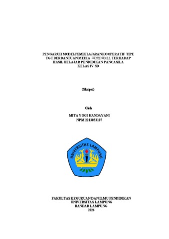MITA, YOGI HANDAYANI (2026) PENGARUH MODEL PEMBELAJARAN KOOPERATIF TIPE TGT BERBANTUAN MEDIA WORDWALL TERHADAP HASIL BELAJAR PENDIDIKAN PANCASILA KELAS IV SD. FAKULTAS KEGURUAN DAN ILMU PENDIDIKAN, UNIVERSITAS LAMPUNG.