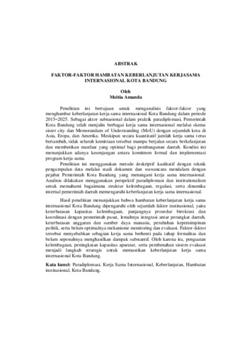 MEITIA, AMANDA (2026) FAKTOR-FAKTOR HAMBATAN KEBERLANJUTAN KERJASAMA INTERNASIONAL KOTA BANDUNG. FAKULTAS ILMU SOSIAL DAN ILMU POLITIK, UNIVERSITAS LAMPUNG.