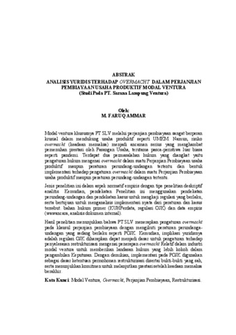 M. Faruq , Ammar (2026) ANALISIS YURIDIS TERHADAP OVERMACHT DALAM PERJANJIAN PEMBIAYAAN USAHA PRODUKTIF MODAL VENTURA (Studi Pada PT. Sarana Lampung Ventura). FAKULTAS HUKUM , UNIVERSITAS LAMPUNG.