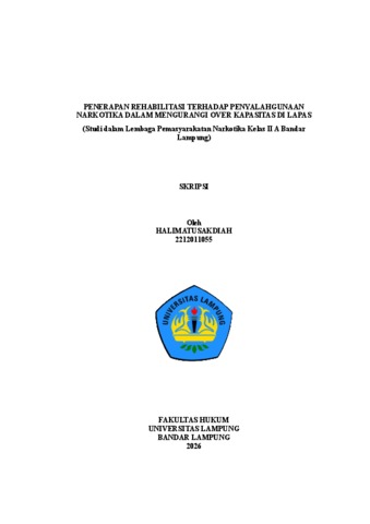 HALIMATUSAKDIAH, . (2026) PENERAPAN REHABILITASI TERHADAP PENYALAHGUNAAN NARKOTIKA DALAM MENGURANGI OVER KAPASITAS DI LAPAS (Studi dalam Lembaga Pemasyarakatan Narkotika Kelas II A Bandar Lampung). FAKULTAS HUKUM , UNIVERSITAS LAMPUNG.