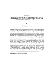 KARAKTERISTIK KIMIA DAN SENSORI YOGURT TEPUNG PISANG KEPOK (Musa paradisiaca formatypica) DENGAN PENAMBAHAN BAKTERI PROBIOTIK Lactobacillus casei