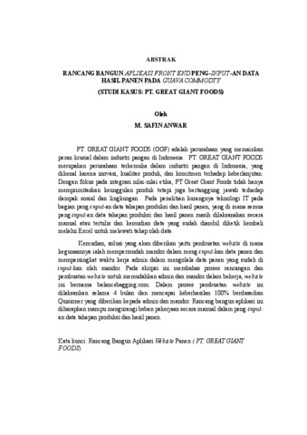 M. Safin , Anwar (2026) RANCANG BANGUN FRONT END APLIKASI BALANCE BAGGING BERBASIS WEBSITE PADA GUAVA COMMODITY (STUDI KASUS: PT. GREAT GIANT FOODS). FAKULTAS TEKNIK, UNIVERSITAS LAMPUNG.