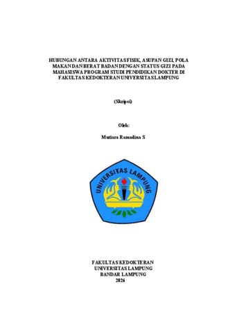 MUTIARA, RAMADINA (2026) HUBUNGAN ANTARA AKTIVITAS FISIK, ASUPAN GIZI, POLA MAKAN DAN BERAT BADAN DENGAN STATUS GIZI PADA MAHASISWA PROGRAM STUDI PENDIDIKAN DOKTER DI FAKULTAS KEDOKTERAN UNIVERSITAS LAMPUNG. FAKULTAS KEDOKTERAN , UNIVERSITAS LAMPUNG.