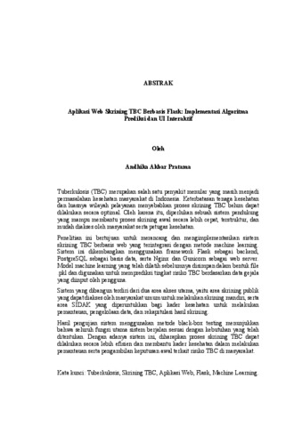 Andhika, Akbar Pratama (2026) Aplikasi Web Skrining TBC Berbasis Flask: Implementasi Algoritma Prediksi dan UI Interaktif. FAKULTAS TEKNIK, UNIVERSITAS LAMPUNG.