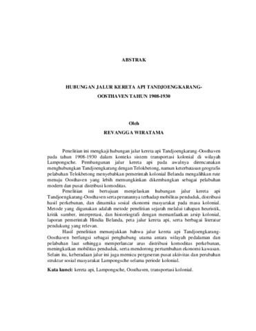 Revangga , Wiratama (2026) HUBUNGAN JALUR KERETA API TANDJOENGKARANG- OOSTHAVEN TAHUN 1908-1930. FAKULTAS KEGURUAN DAN ILMU PENDIDIKAN, UNIVERSITAS LAMPUNG.