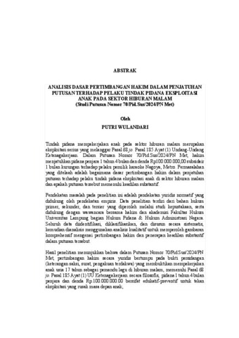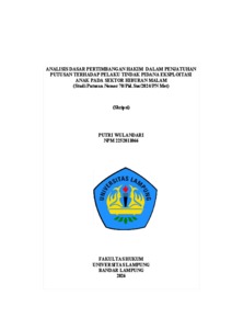 Putri , WulanDari (2026) Analisis Dasar Pertimbangan Hakim Dalam Penjatuhan Putusan Terhadap Pelaku Tindak Pidana Eksploitasi Anak Pada Sektor Hiburan Malam (Studi Putusan Nomor: 70/Pid.Sus/2024/PN.Met). FAKULTAS HUKUM, UNIVERSITAS LAMPUNG.