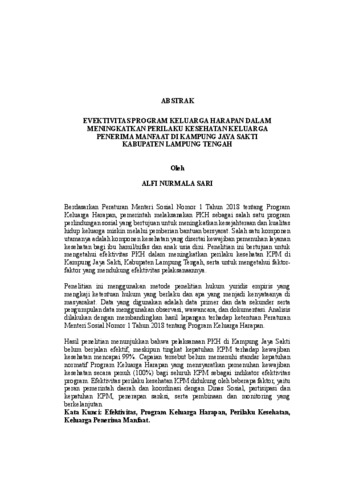 EFEKTIVITAS PROGRAM KELUARGA HARAPAN DALAM MENINGKATKAN PERILAKU KESEHATAN KELUARGA PENERIMA MANFAAT DI KAMPUNG JAYA SAKTI KEBUPATEN LAMPUNG TENGAH