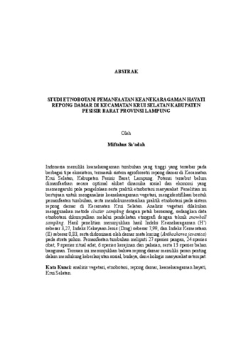 Miftahus, Sa'adah (2026) STUDI ETNOBOTANI PEMANFAATAN KEANEKARAGAMAN HAYATI REPONG DAMAR DI KECAMATAN KRUI SELATAN KABUPATEN PESISIR BARAT PROVINSI LAMPUNG. FAKULTAS PERTANIAN, UNIVERSITAS LAMPUNG.