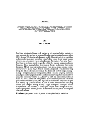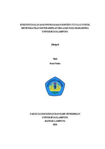 Resti, Nadia (2026) EFEKTIVITAS LAYANAN PENGUASAAN KONTEN FEYNMAN UNTUK MENINGKATKAN KETERAMPILAN BELAJAR PADA MAHASISWA UNIVERSITAS LAMPUNG. Fakultas Keguruan dan Ilmu Pendidikan, Universitas Lampung.