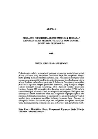 Nadya Khalisiarani, Rahman (2026) PENGARUH FLEKSIBILITAS DAN KOMPENSASI TERHADAP KEPUASAN KERJA PEKERJA FREELANCE PADA INDUSTRI PARIWISATA DI INDONESIA. FAKULTAS ILMU SOSIAL DAN ILMU POLITIK, UNIVERSITAS LAMPUNG.