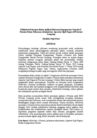 Khalisha , Najla Putri (2026) Efektivitas Penerapan Sistem Aplikasi Pelayanan Kepegawaian Terpadu E- Pensiun Dalam Pelayanan Administrasi Aparatur Sipil Negara Di Provinsi Lampung. HUKUM , UNIVERSITAS LAMPUNG.